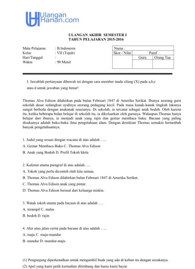 Soal Uas Bahasa Indonesia Kelas 7 Semester 2 Pdf / Soal Uas Bahasa Indonesia Kelas 7 Dengan / B 23.kalimat larangan ibu yang sesuai dengan ilustrasi tersebut adalah kamu .